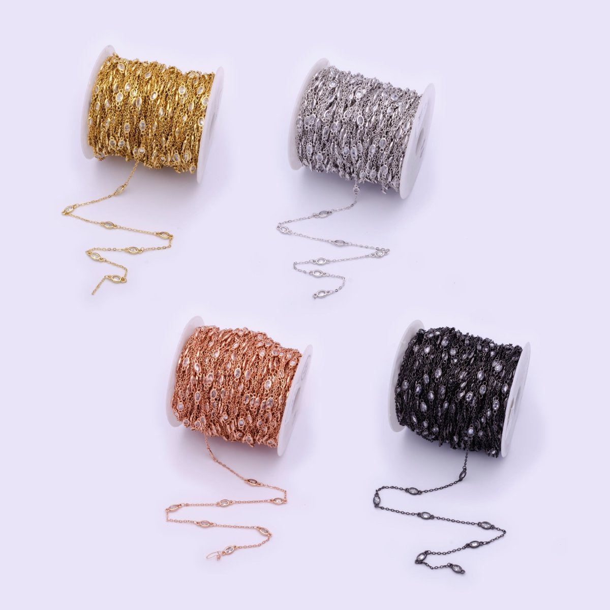 Gold Filled Oval Bezel Clear Cubic Zirconia CZ Unfinished Wholesale Chain by Yard | ROLL-818, ROLL-819, ROLL-820, ROLL-821